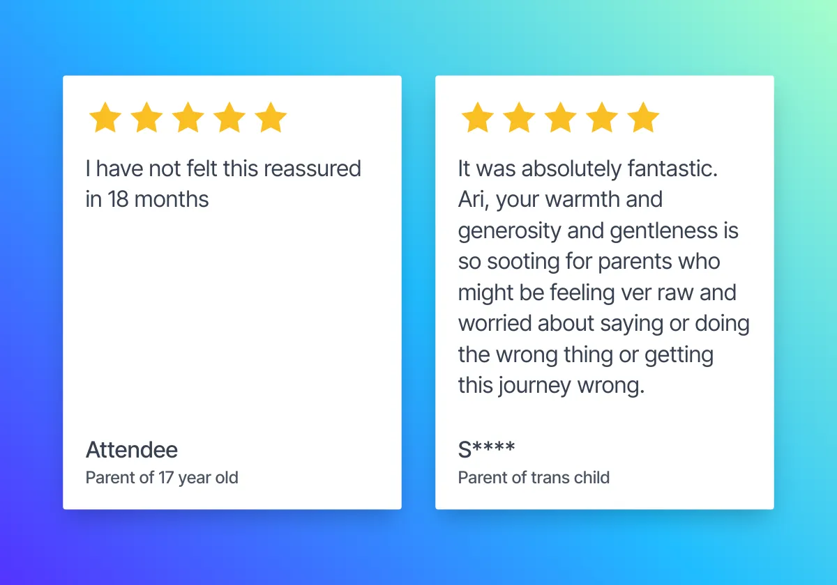 This series is the first module of the full course, offered free. In it, Ari explores the most common parental experiences of having a trans child, what the research tells us about what actually helps, and how to begin responding in ways that support your child's wellbeing — and your own.
